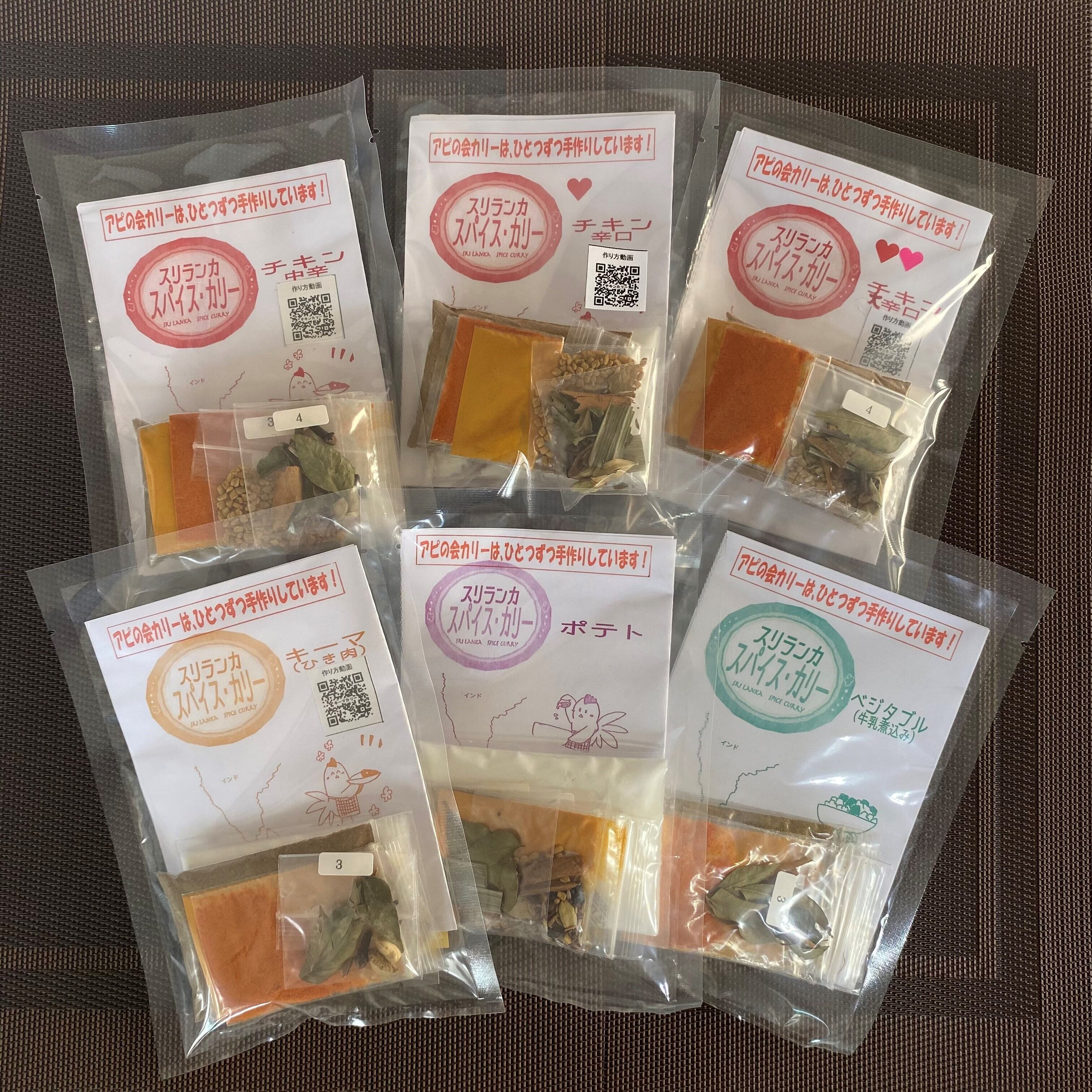 スパイスカリー6袋セット(チキン大辛口、チキン辛口、チキン中辛、ポテト、キーマ、ベジタブル)